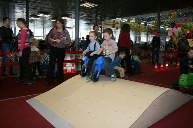 Оборудование было сделано по заказу одной из компании, которая занимается поставкой и продажей детских мотоциклов и использовалось детьми во всё время проведения выставки.