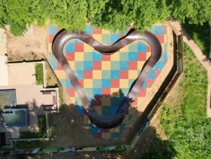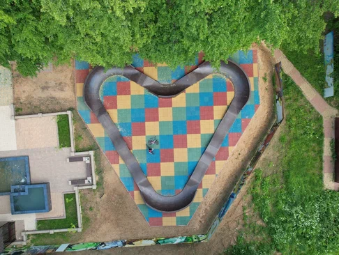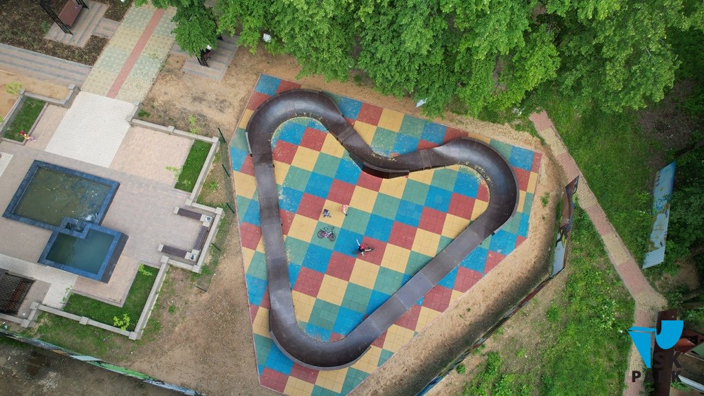Данный памп-трек представляет собой замкнутую трассу, с уклонами, перепадами по высоте и 4 поворотами, геометрически сложенную в форме сердца. Трек длиной 52 метра позволяет кататься 4 райдерам одновременно, практически в любых дисциплинах — ВМХ/МТВ, скейтбординг, ролики, кик скутер, причем как новичкам, так и более опытным. Так же памп-трек позволяет проводить соревнования и показательные выступления и в целом прекрасно дополняет атмосферу Городского парка.