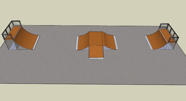 В проект скейт-парка входят: Квотер высотой 2м., Флай-бокс с трансфером, Квотер высотой 1,6м.