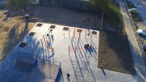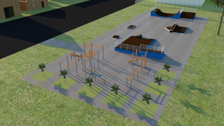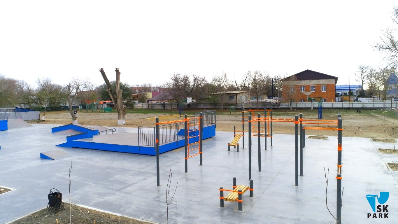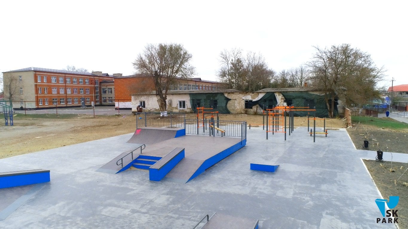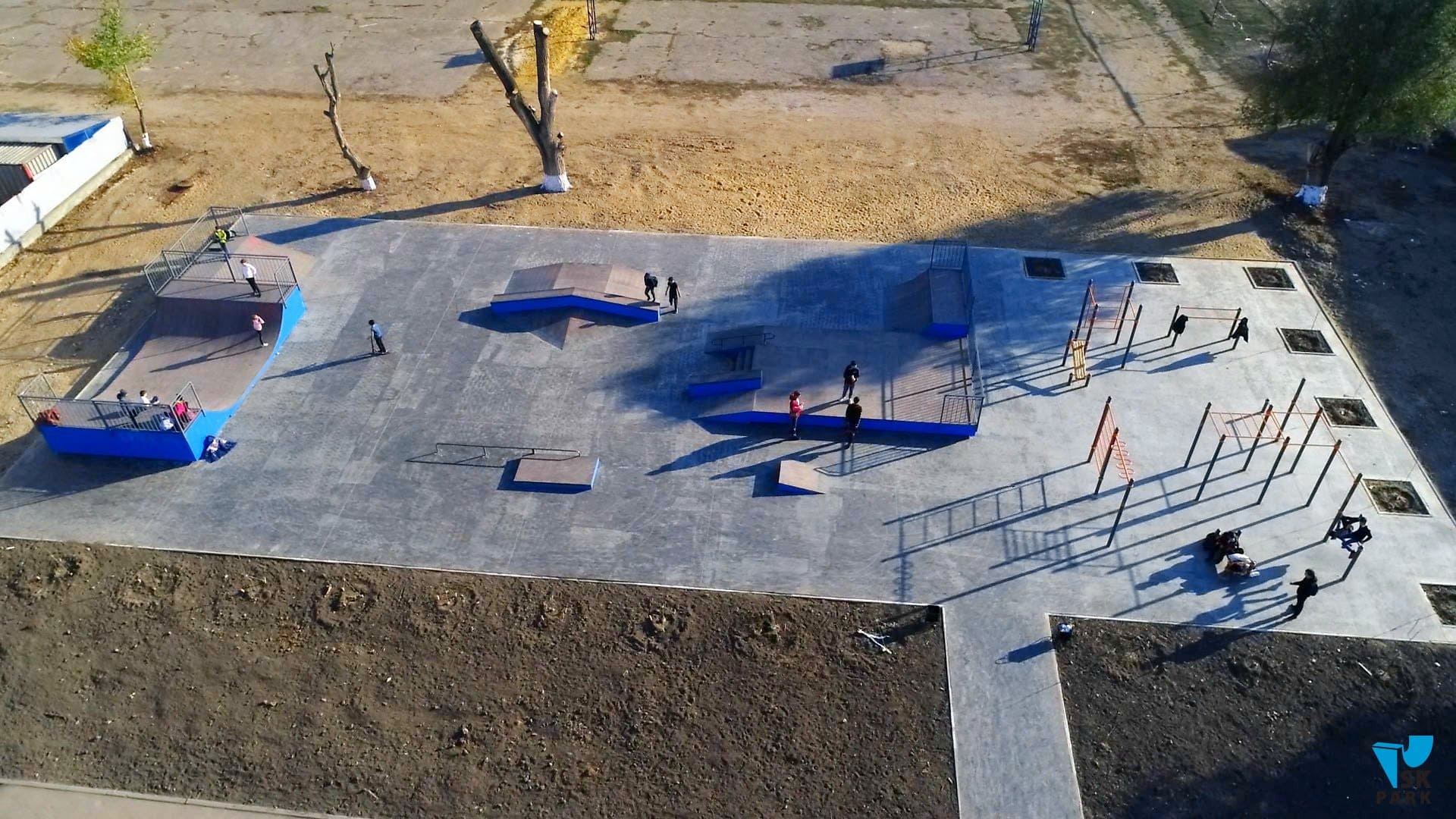 Cкейт парк - за основу был взят один из типовых проектов от компании SK PARK. На площади 545 кв.м установлены фанбокс, скейт плаза, квотерпайп и мини-рампа М2 шириной почти 5 метров, а так же линия фигур для изучения базовых трюков по прыжкам и скольжениям. Площадка рассчитана на райдеров начального и среднего уровня в таких дисциплинах как скейтбординг, ролики, кик-скутер и вмещает до 15 человек. Фигуры скейт парка собраны на деревянном каркасе, предварительно обработанном огне- био- защитным и антикоррозийным составом. Рабочая поверхность обшита ламинированной фанерой с антискользящим покрытием, крепежные элементы оцинкованы и устойчивы к воздействию окружающей среды.