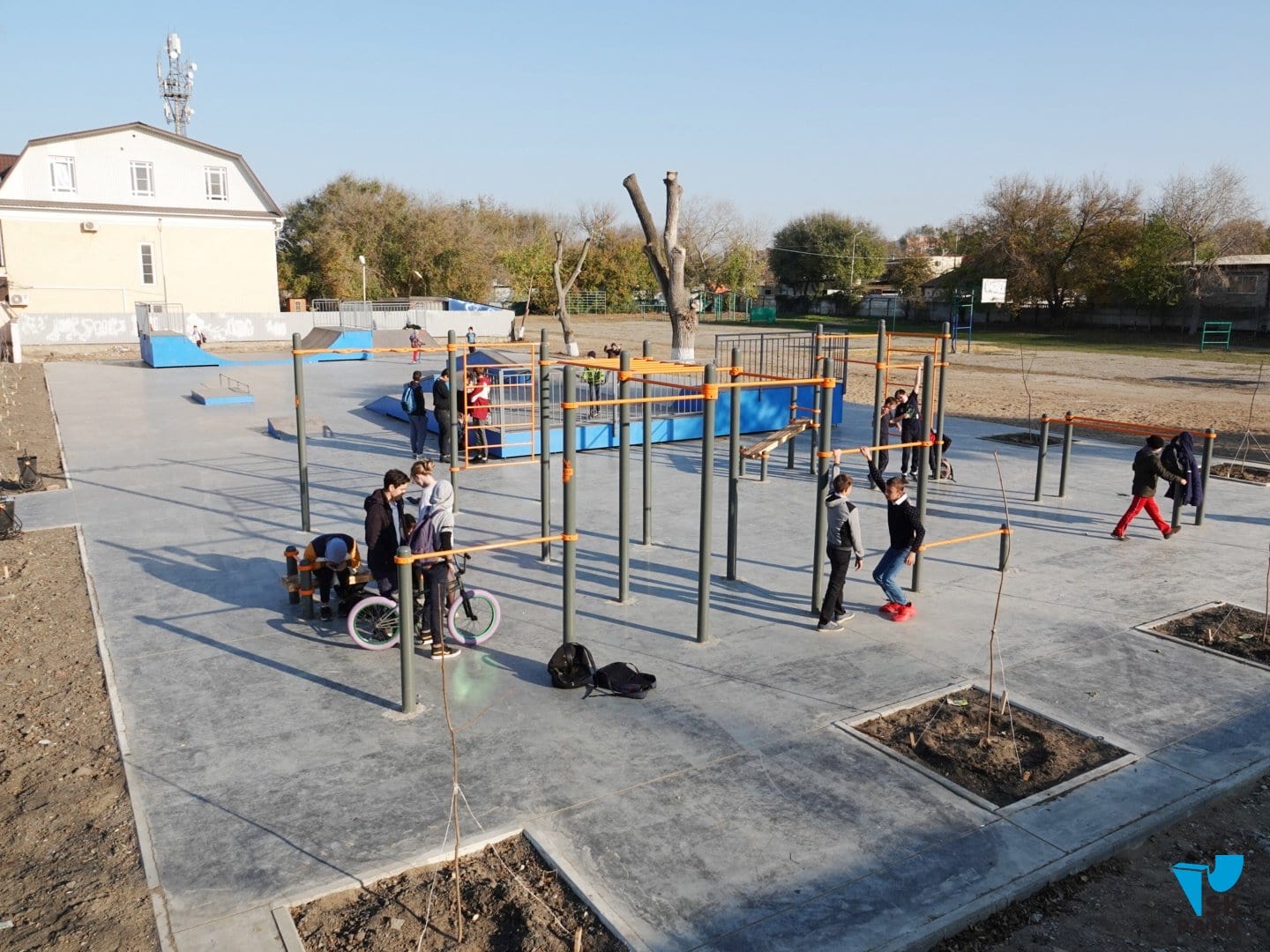 Спортивный кластер площадью 825 кв.м., реализованный нами в Тамани в 2019 году, совмещает в себе скейт парк и площадку для воркаута. Все оборудование установлено на монолитное основание из бетона, изготовленное заказчиком самостоятельно. Территория кластера разбита на 2 зоны: