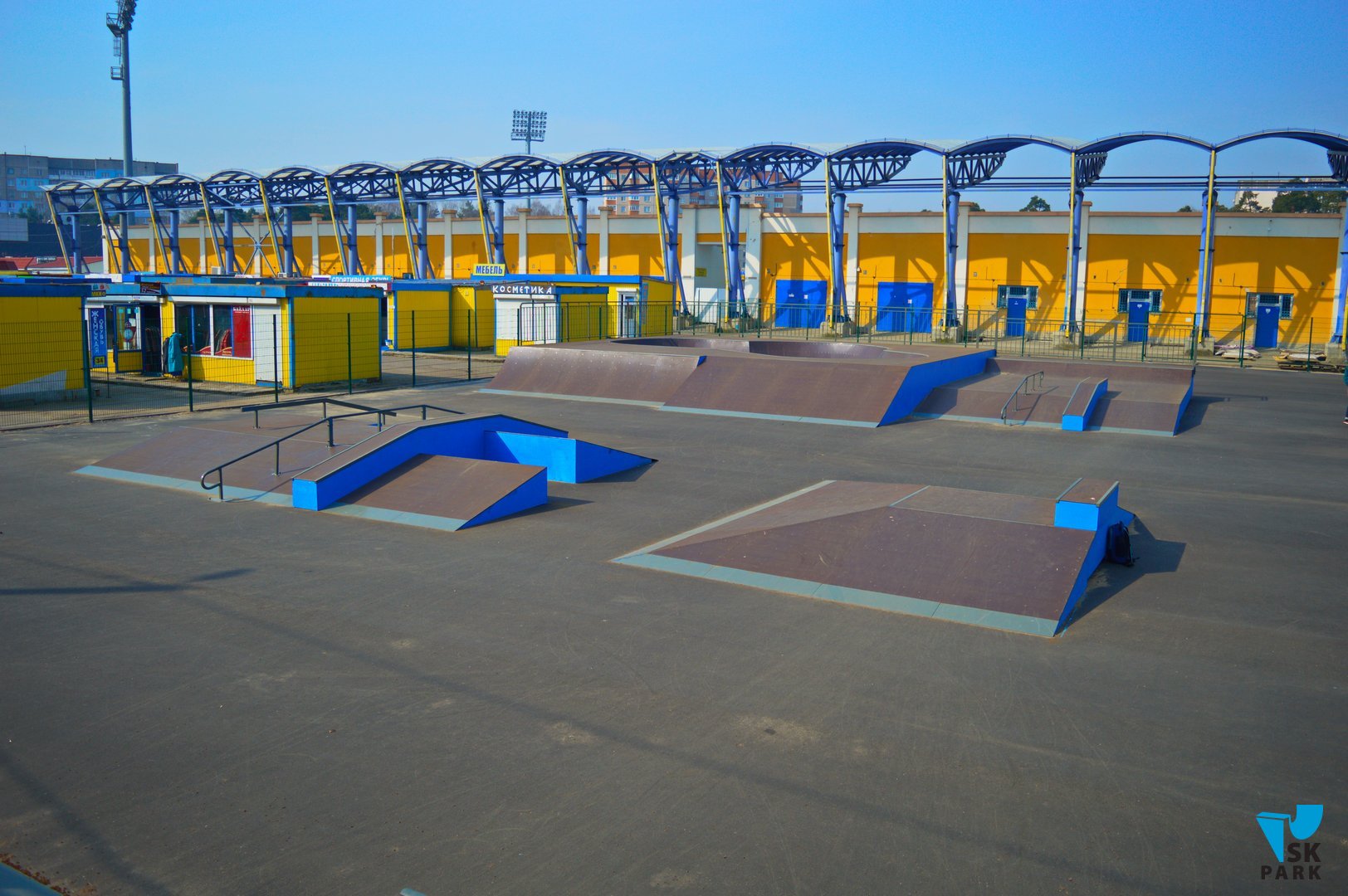 Скейт парк состоит из 10 фигур и включает в себя две основных зоны, это - боул и стрит.