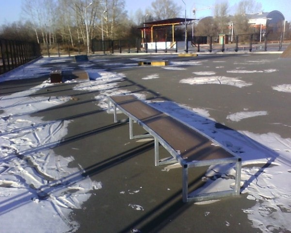 В начале Ноября 2010 года нашей компанией было изготовленно, доставлено и установлено 4 элемента для скейт-парка в г. Абакан:Снейкед-бенч, Пайрамид-бокс, Бенк, Ланч-бокс.
