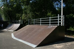 Скейт-парк выполнен на деревянном каркасе, обшитым финской ламинированной фанерой.