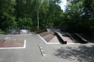 Проект скейт-парка включает в себя 8 разных фигур: Трансферную радиусную разгонную горку, Трансферную прямую разгонную горку, фан-бокс с кинкованной тумбой и кинкованным рейлом, скейт-плаза, квотерпайп, рейл кикер, бокс