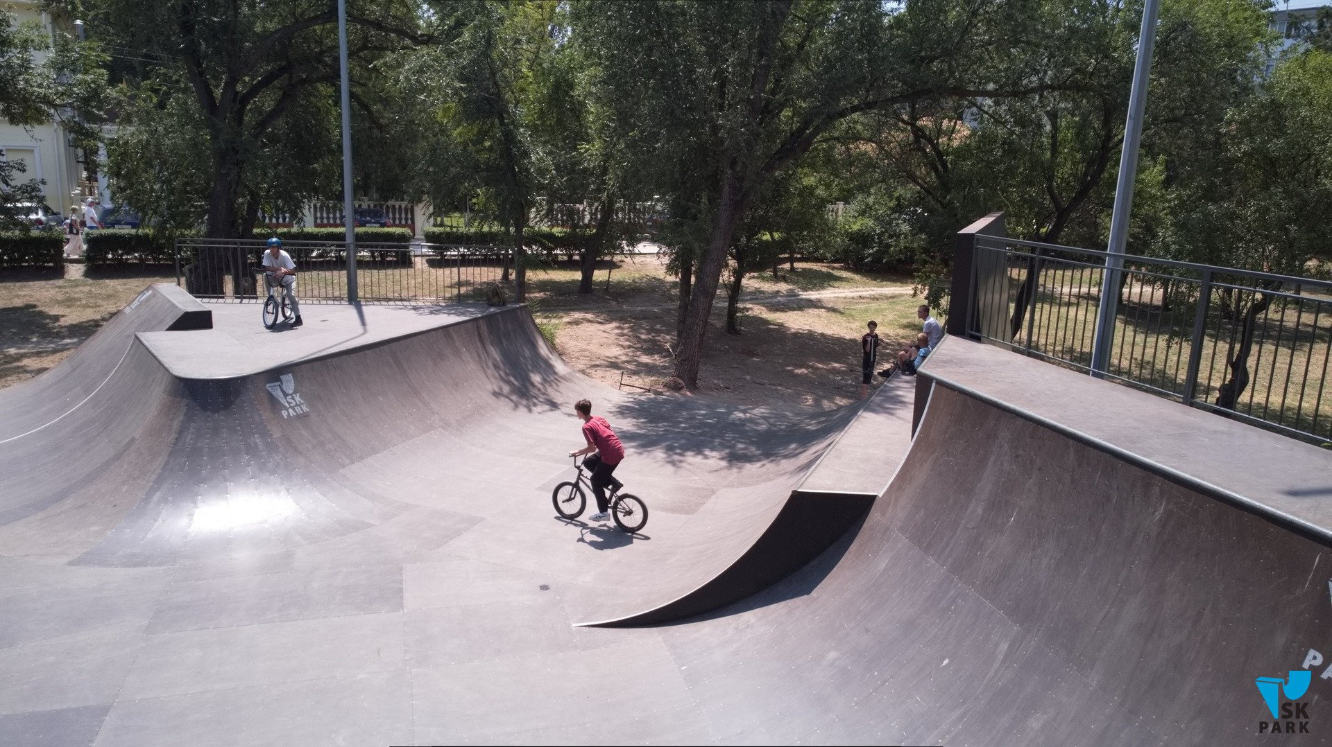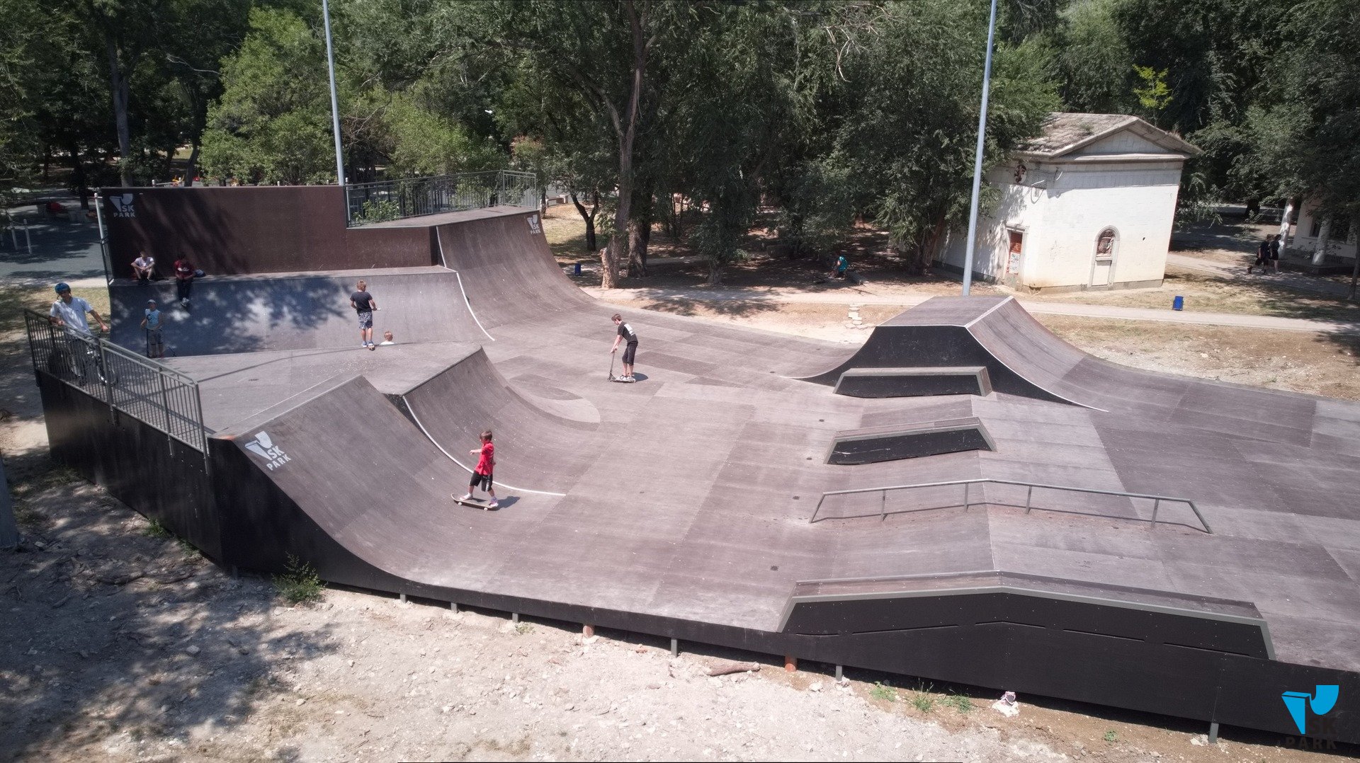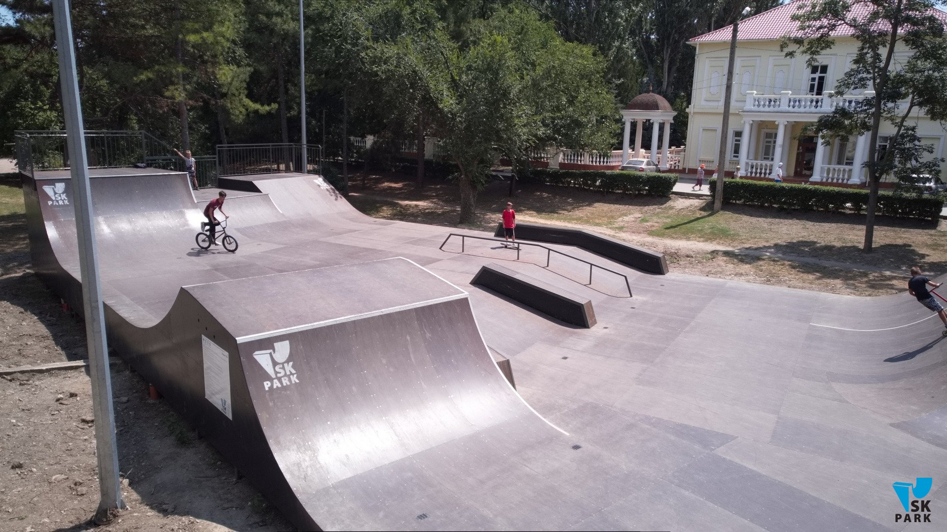 В 2022 году в компанию SKpark обратился представитель ООО "Крымдорстрой" с предложением разработать и реализовать проект скейт-плазы на территории парка "Комсомольский". Скейт-плаза представляет собой сложный комплекс разноуровневых фигур, объединенных в одну многофункциональную конструкцию, отвечающую требованиям райдеров всех основных дисциплин — ролики, скейтборд, BMX, кик-скутер. Скейт-плаза площадью 651 кв.м. оснащена разгонными горками, разноуровневыми квотерпайпами, рампой, а так же разнообразными фигурами для скольжений и прочих трюков — флайбоксы, фанбокс, перила и пр.
