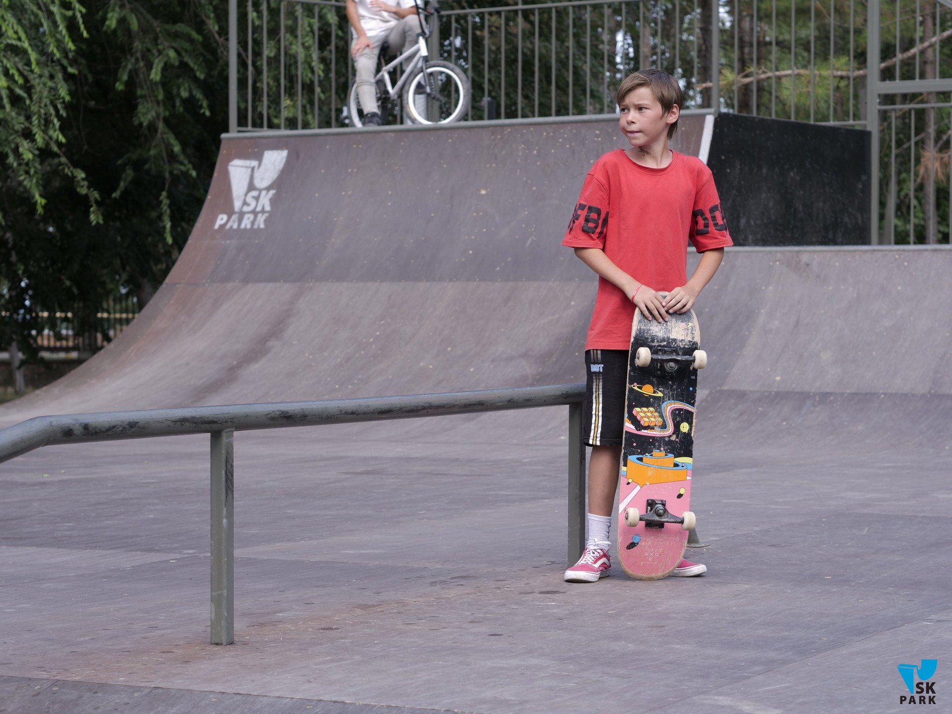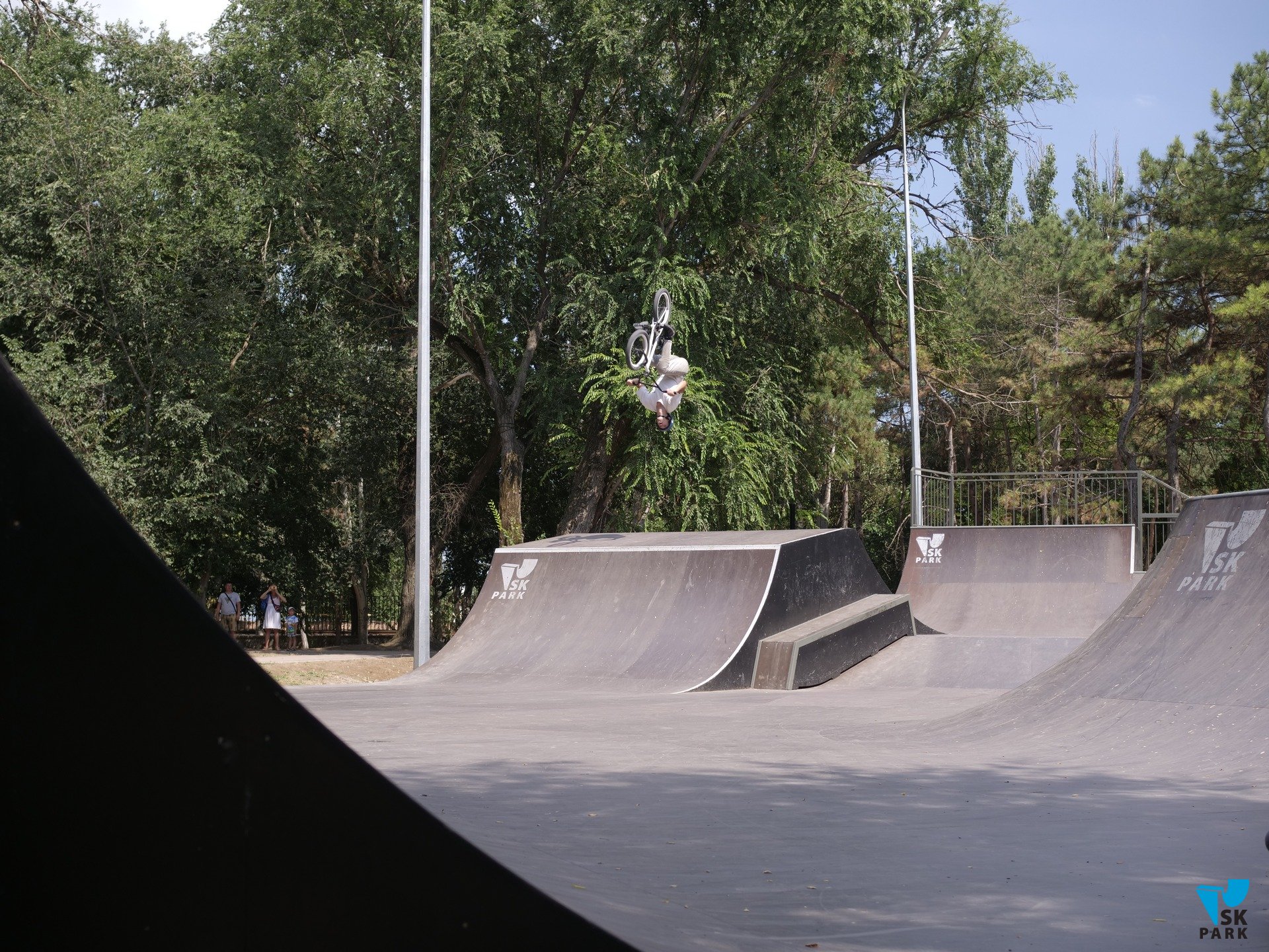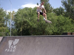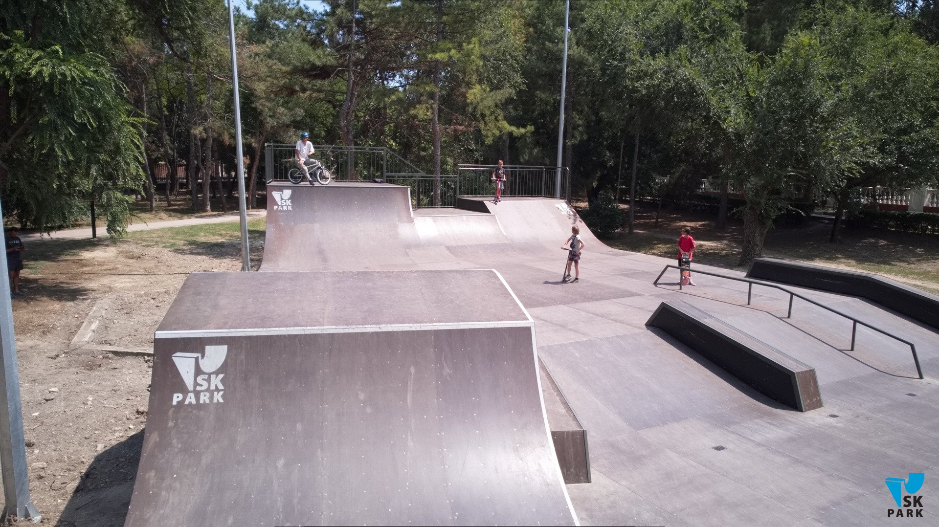 В 2022 году в компанию SKpark обратился представитель ООО "Крымдорстрой" с предложением разработать и реализовать проект скейт-плазы на территории парка "Комсомольский". Скейт-плаза представляет собой сложный комплекс разноуровневых фигур, объединенных в одну многофункциональную конструкцию, отвечающую требованиям райдеров всех основных дисциплин — ролики, скейтборд, BMX, кик-скутер. Скейт-плаза площадью 651 кв.м. оснащена разгонными горками, разноуровневыми квотерпайпами, рампой, а так же разнообразными фигурами для скольжений и прочих трюков — флайбоксы, фанбокс, перила и пр.