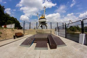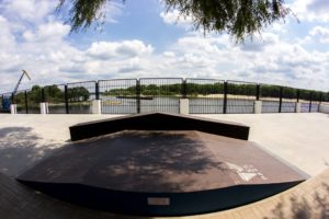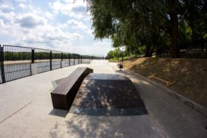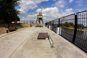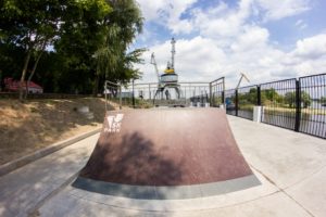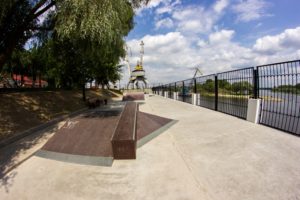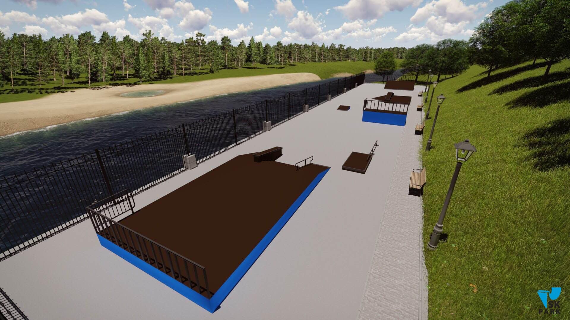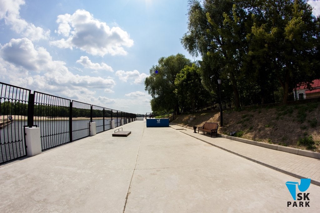 Скейтпарк располагается на набережной реки Сож являющейся одним из красивейших мест в Гомеле.