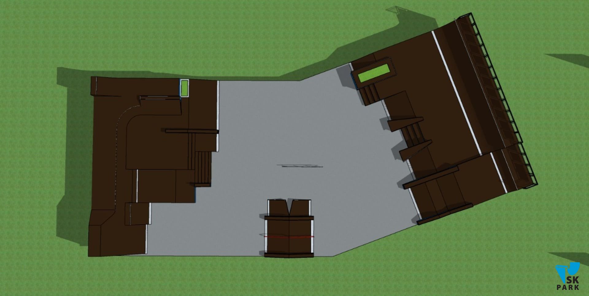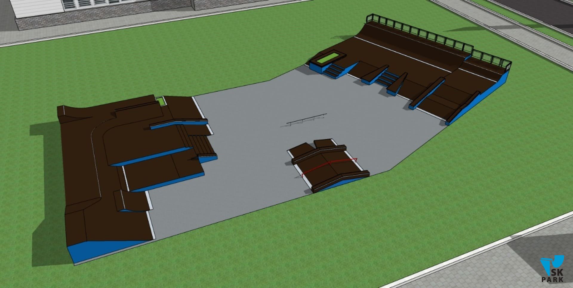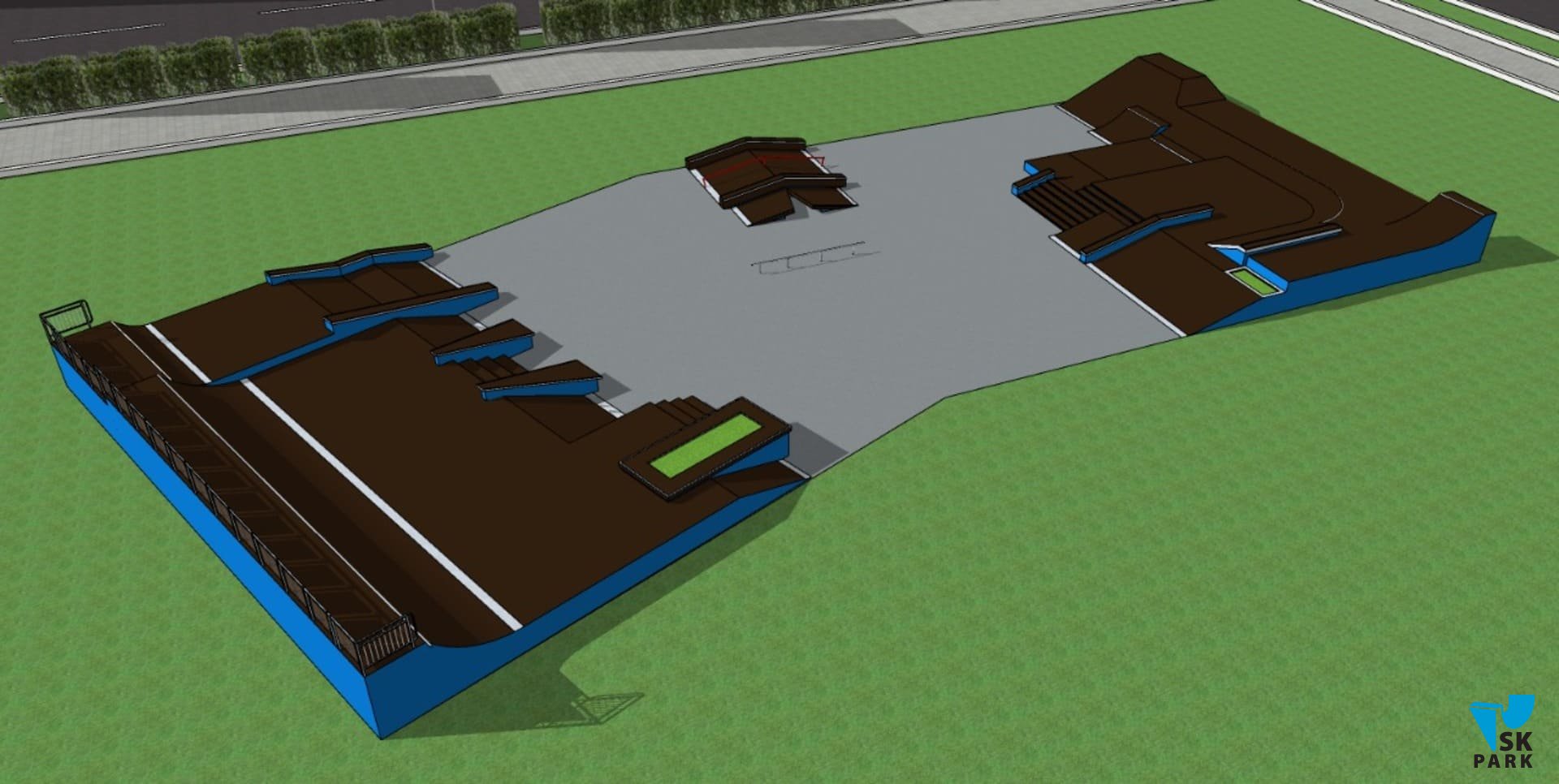 С учётом климатических особенностей региона было решено использовать металлический каркас в качестве основы для производства фигур скейт парка. На площади 890 кв. м. были размещены две многофункциональные скейтплазы и мультифункциональный фанбокс. Каждая из этих фигур — полноценная площадка для отработки трюков, однако в комплексе, всё это оборудование предполагает множество различных траекторий и комбинаций, что делает катание интересным и захватывающим. Сложная и продуманная геометрия фигур скейт парка, состоит из граней, наклонов и разноуровневых плоскостей, это позволяет подойти к тренировке творчески, придумывая различные комбинации трюков. Скейт парк спроектирован с расчетом на разный уровень подготовки катающихся, вмещает в себя до 40 человек и подходит для таких дисциплин как ролики, кик-скутер и олимпийской дисциплины Скейтбординг "Стрит".