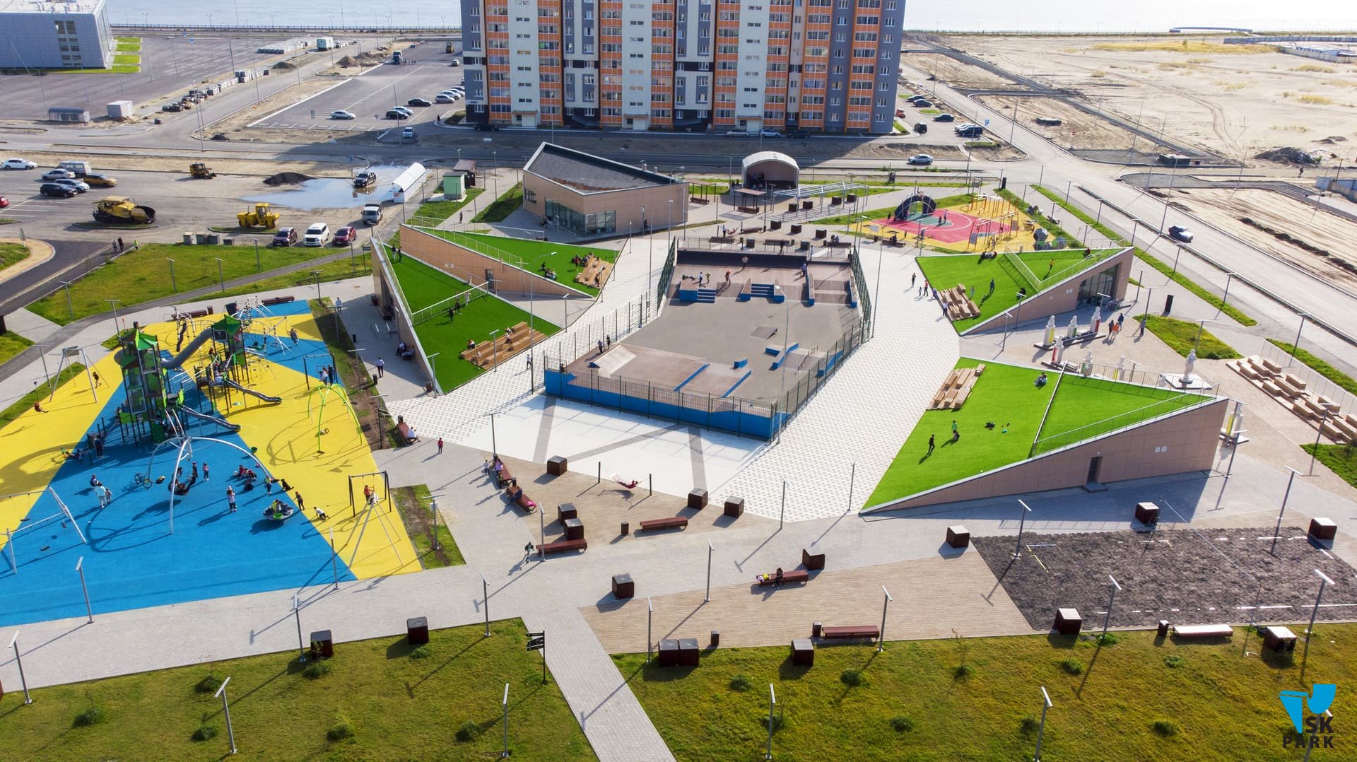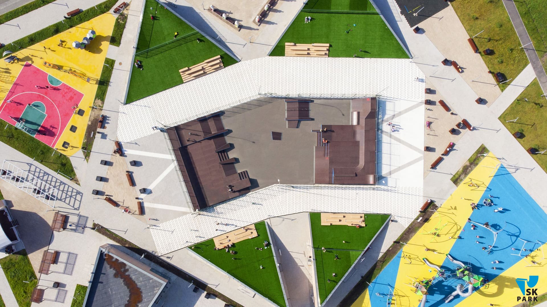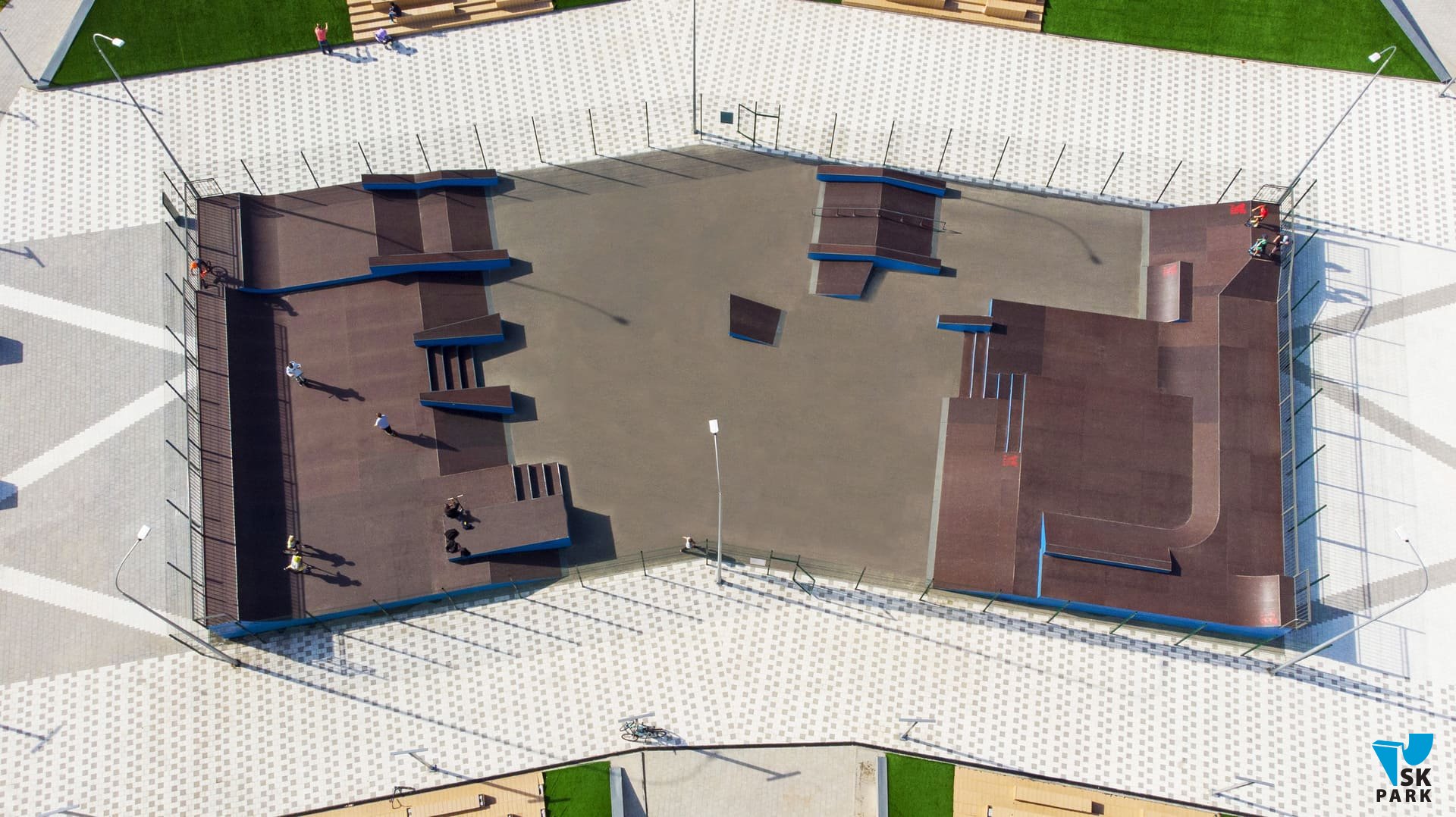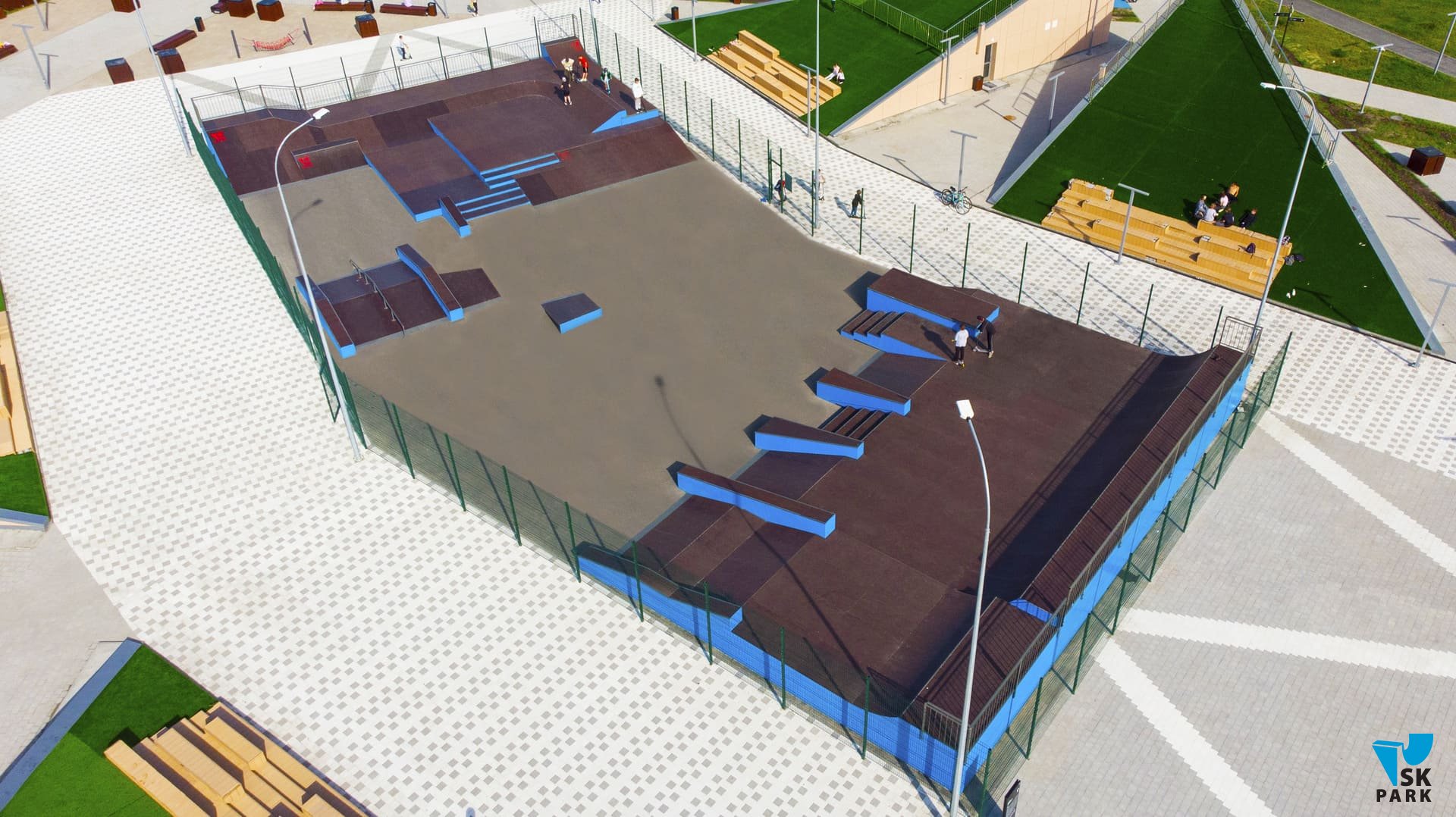 С учётом климатических особенностей региона было решено использовать металлический каркас в качестве основы для производства фигур скейт парка. На площади 890 кв. м. были размещены две многофункциональные скейтплазы и мультифункциональный фанбокс. Каждая из этих фигур — полноценная площадка для отработки трюков, однако в комплексе, всё это оборудование предполагает множество различных траекторий и комбинаций, что делает катание интересным и захватывающим. Сложная и продуманная геометрия фигур скейт парка, состоит из граней, наклонов и разноуровневых плоскостей, это позволяет подойти к тренировке творчески, придумывая различные комбинации трюков. Скейт парк спроектирован с расчетом на разный уровень подготовки катающихся, вмещает в себя до 40 человек и подходит для таких дисциплин как ролики, кик-скутер и олимпийской дисциплины Скейтбординг "Стрит".