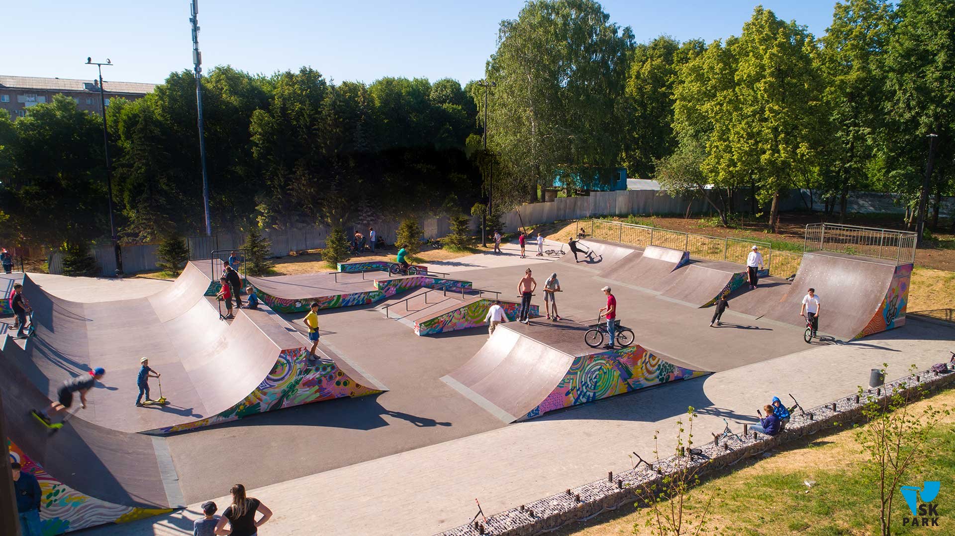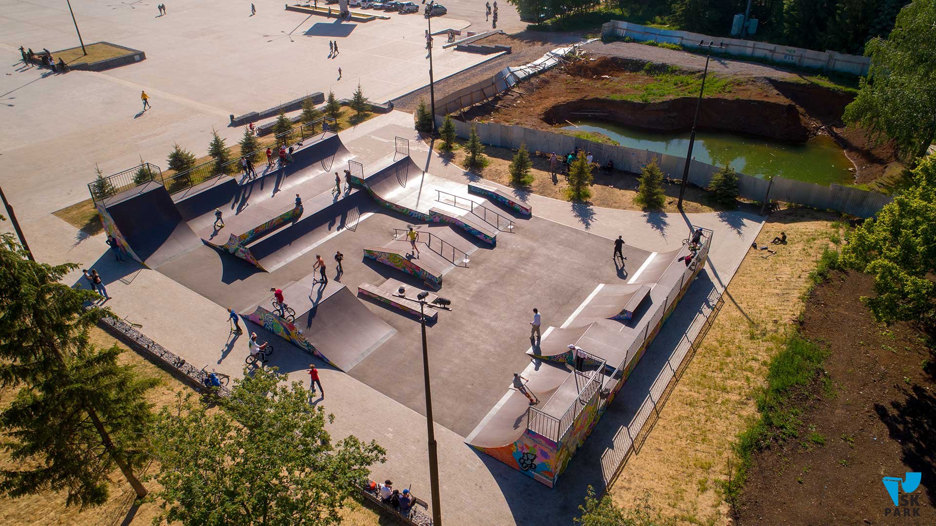 Универсальный скейт парк в Уфе площадью 540 кв.м вмещает 35 человек и рассчитан на любой уровень катающихся в таких дисциплинах как ВМХ/МТВ, скейтбординг, ролики, кик-скутер.