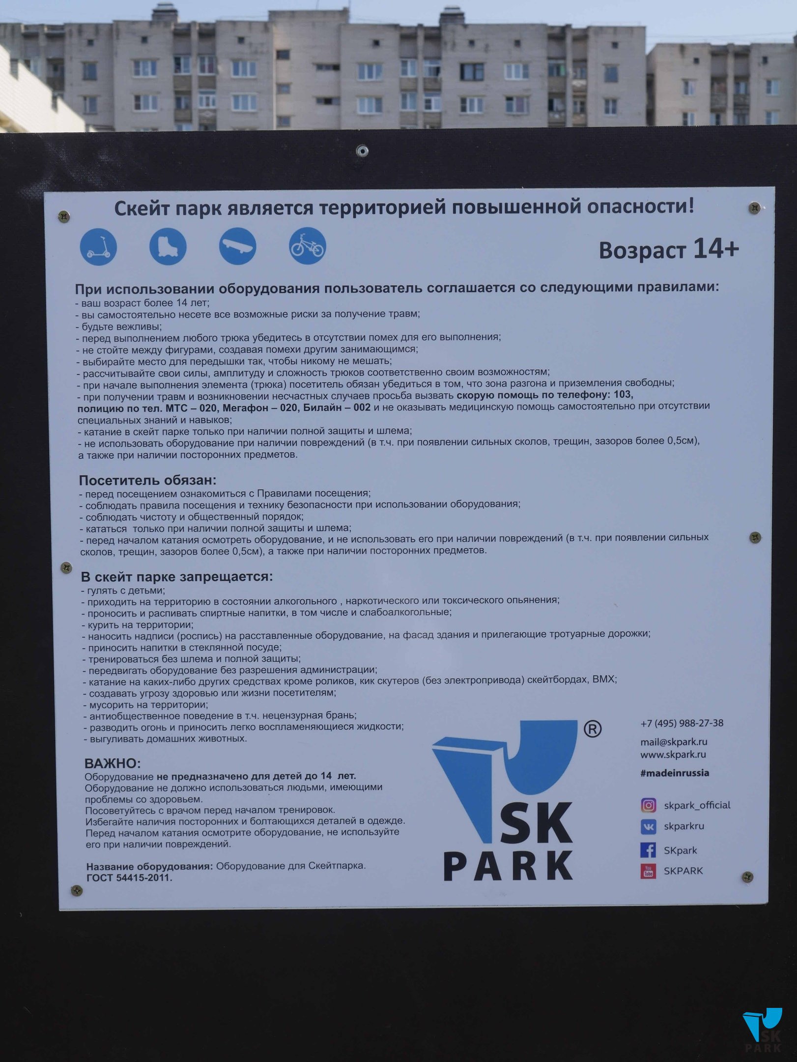 Отличительной чертой этого проекта является совмещённая Мини-рампа и Скейт плаза. Благодаря такому решению райдерам удобно совмещать сразу два стиля катания – радиус и стрит. Оптимальные параметры углов и высоты радиуса делают тренировки в Мини-рампе комфортными и безопасными.