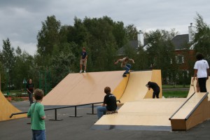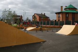 На этот раз это скейтпарк в международом жилом комплексе “Росинка”, который находится по адресу: Московская обл., Красногорский район, деревня Ангелово. Скейтпарк располагается в спортивном центре комплекса, между теннисными кортами и детской площадкой.