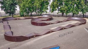 Памп-трек длинной 75 метров, на протяжении которых есть 5 поворотов, создан для непрерывного катания (без кручения педалей или отталкивания от поверхности). Его геометрия оптимальна и комфортна для райдеров с любым уровнем катания. Практические занятия в данной фигуре позволят райдерам развиваться в Олимпийской дисциплине BMX «РЕЙС».