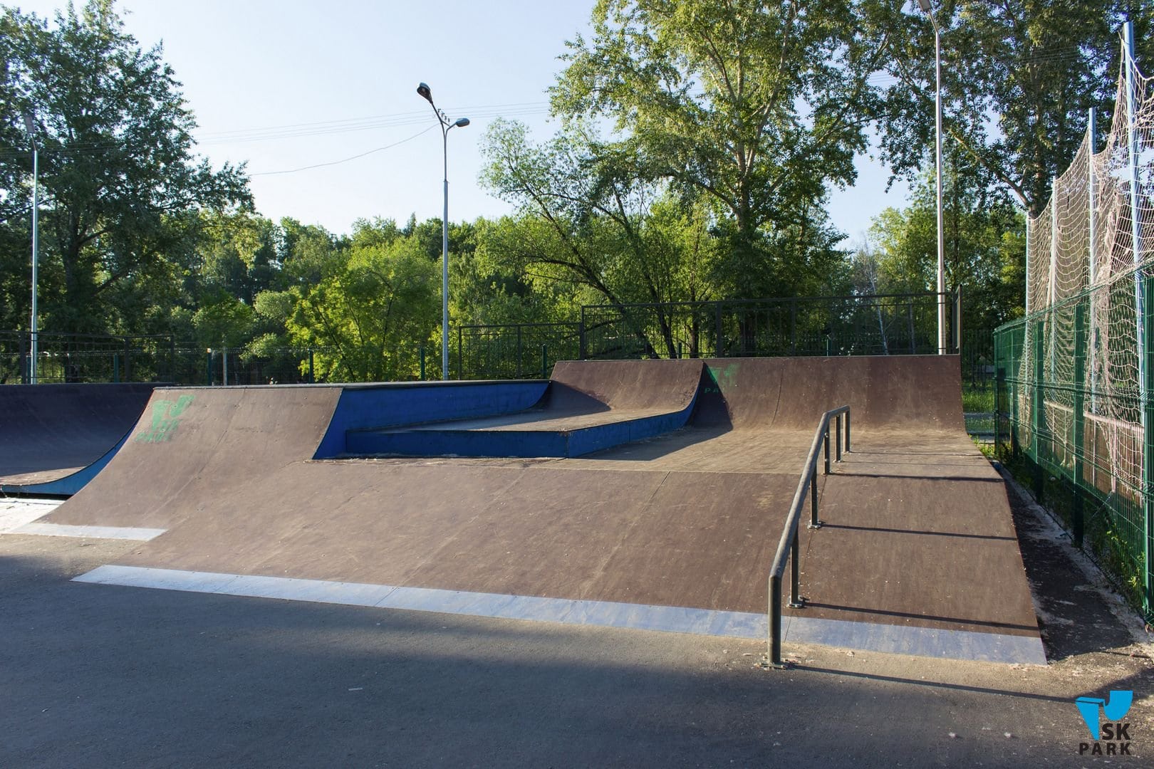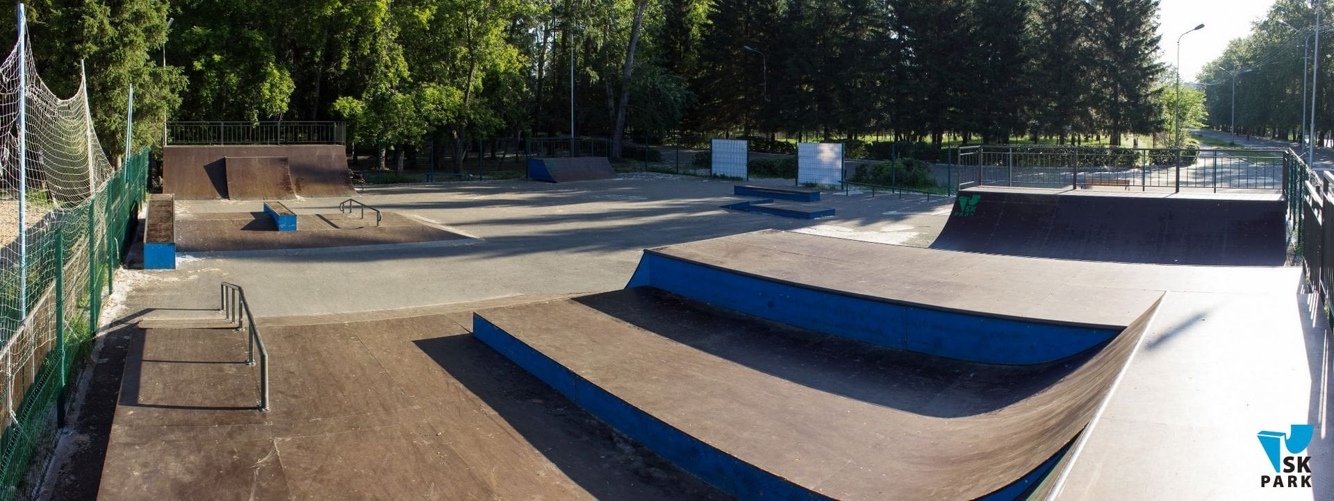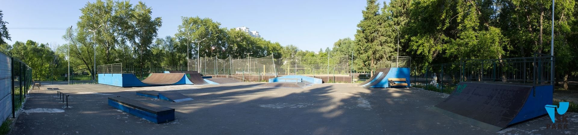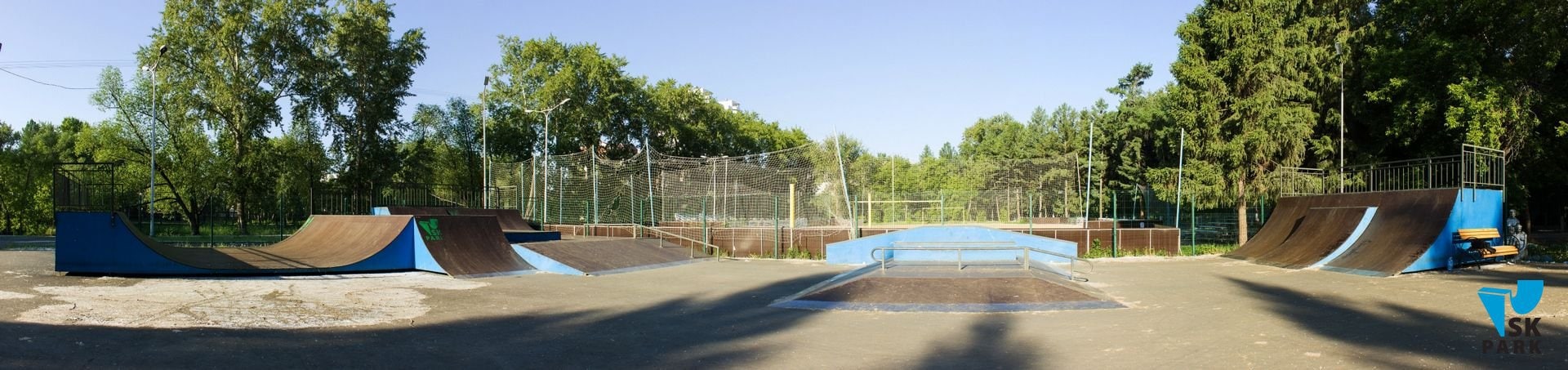 Компания SKPARK обеспечила производство, доставку и монтаж оборудования для скейт парка, в виде 9 фигур, согласно проекту. По просьбе заказчика, в проект были внесены индивидуальные изменения: торцевые части фигур были окрашены в синий цвет, заезды на фигуры изготовлены из нержавеющей стали.