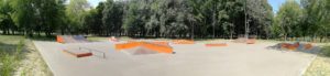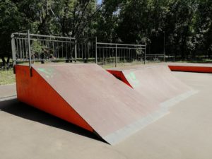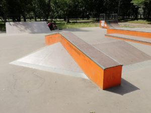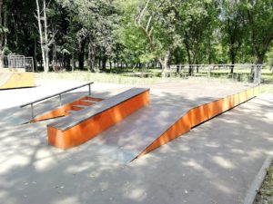 Скейтборд площадка включает в себе такие фигуры как скейтплаза, имитирующая городскую среду и препятствия, также различные конфигурации фан-боксов для прыжков, скольжений и трансферных трюков.