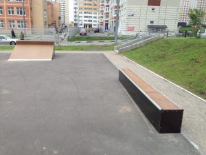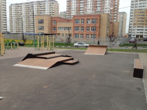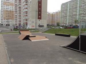 В начале августа 2013 г. наша компания установила небольшой скейтпарк в ЖК “Солнцево-парк” в г. Москве.