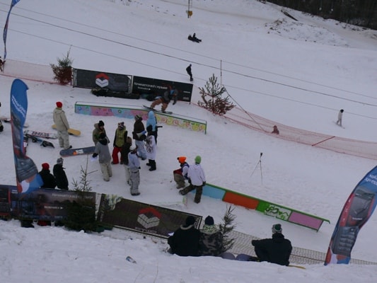 Сноупарк состоит из двух линий фигур и рассчитан для начинающих сноубордистов.