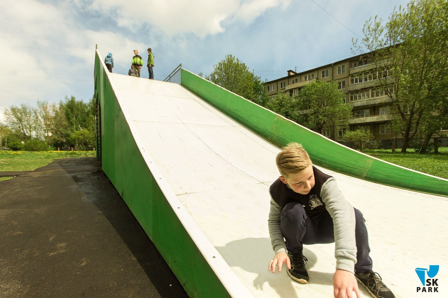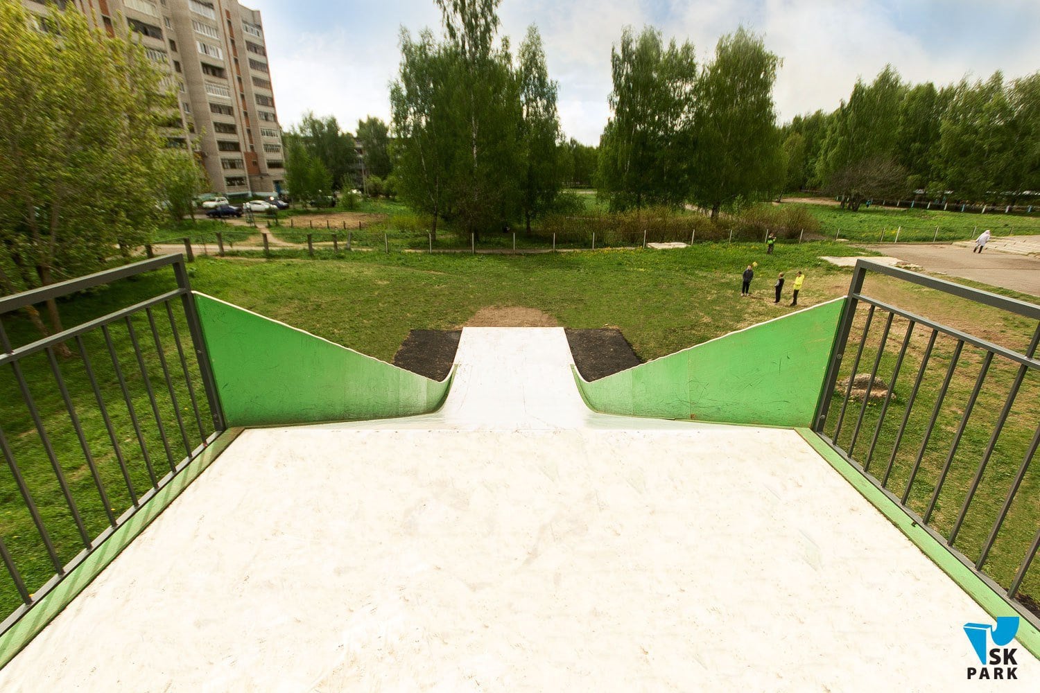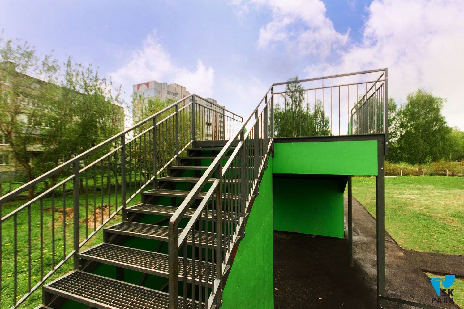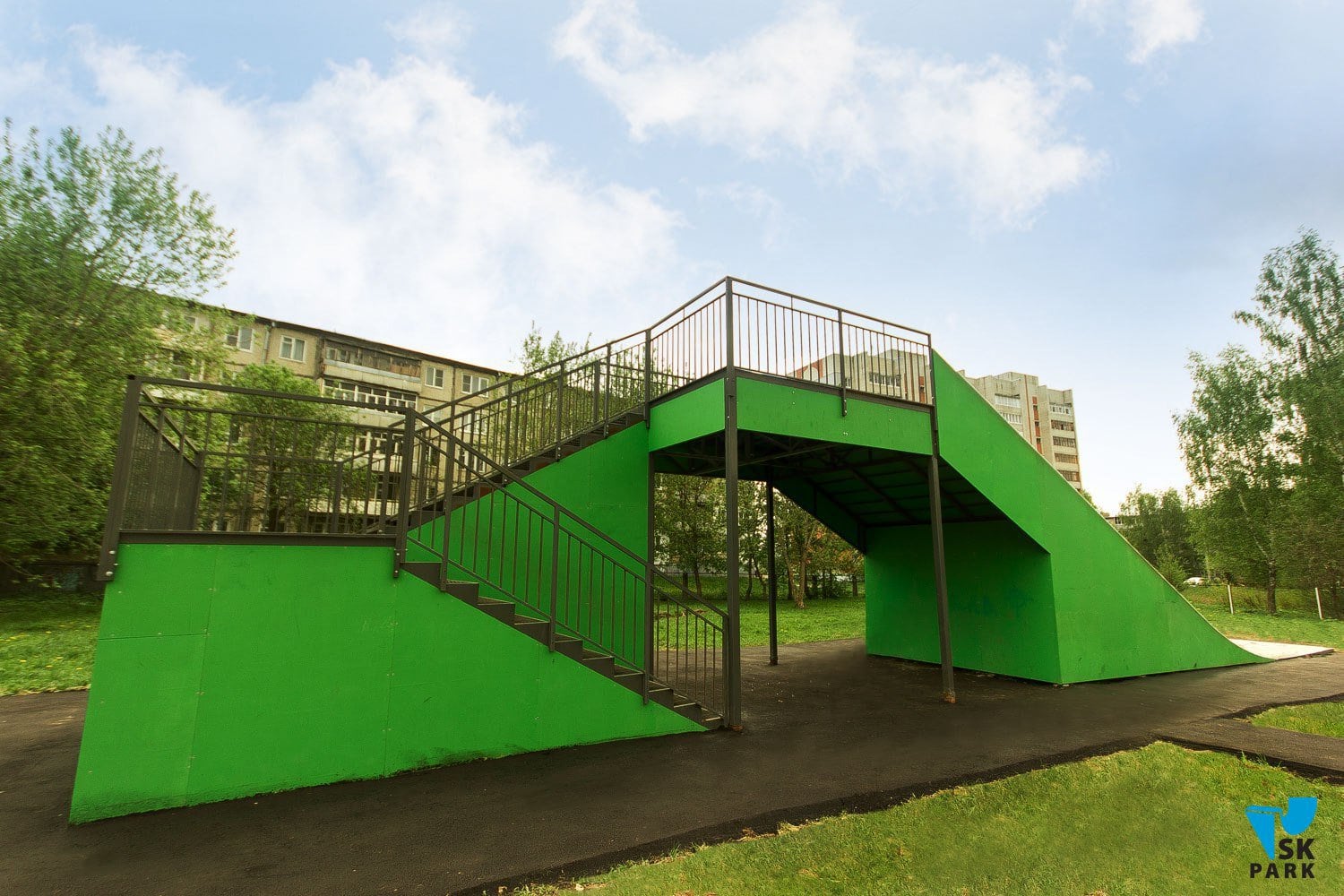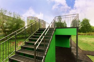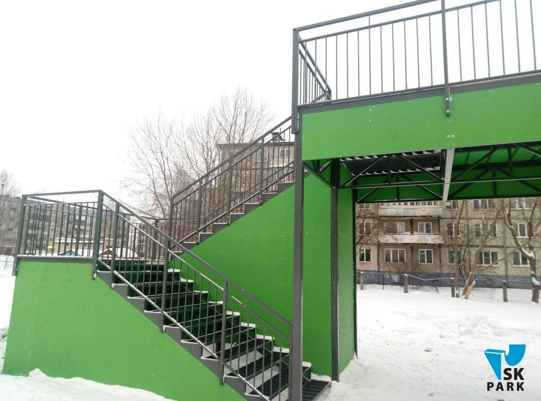Горка оснащена поручнями безопасности по бокам и на подъеме.
