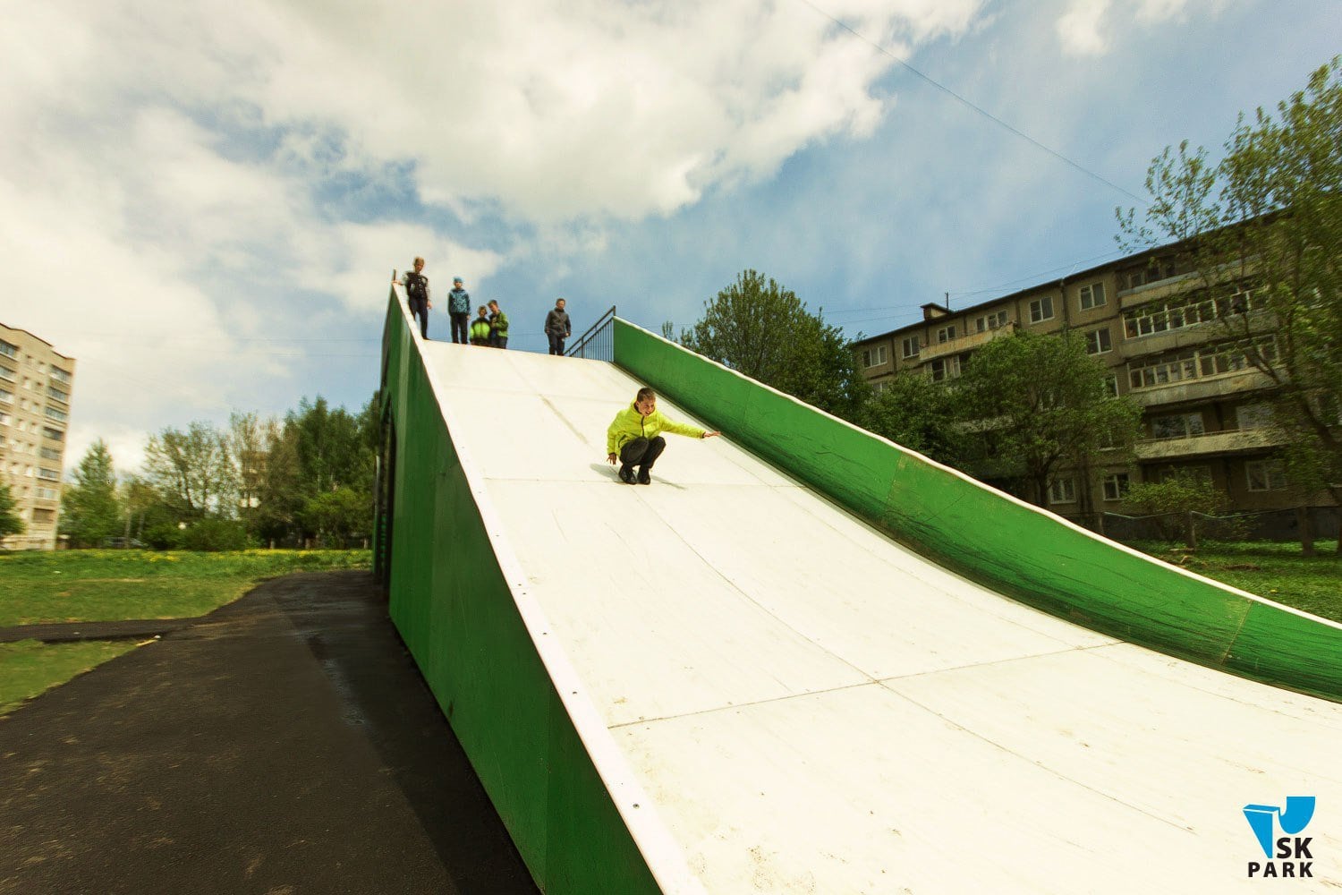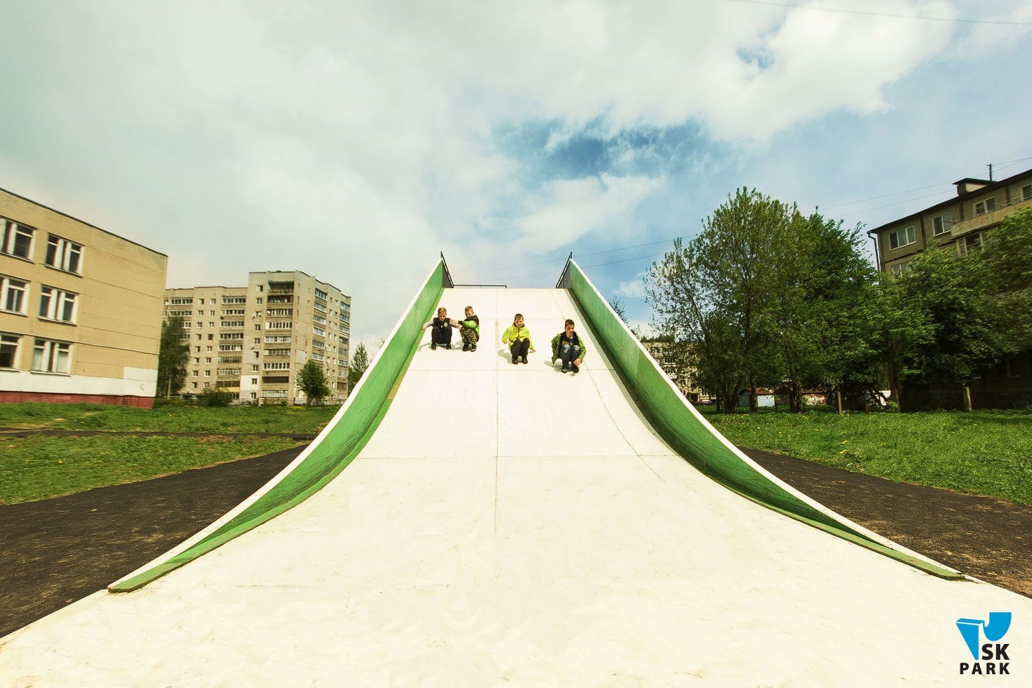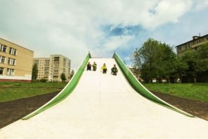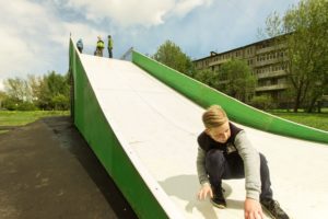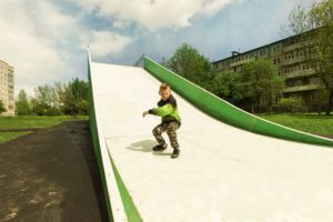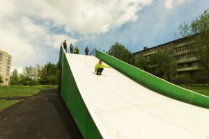 Под конец 2016 года мы произвели и установили универсальную детскую горку для катания на тюбингах в г. Ярославль.