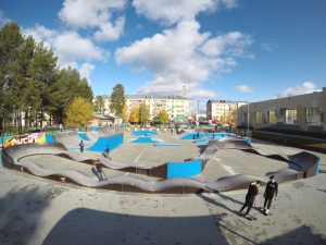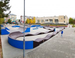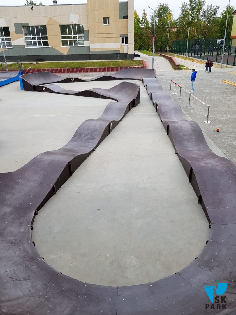 - Модульный памп трек - соответствует проекту SKP 29-13 из нашего каталога, длина его трассы составляет 72 метра и включает в себя 4 поворотные зоны.