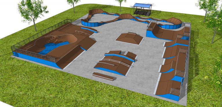 При разработке скейт парка в Белоярском, за основу были взяты некоторые наши типовые проекты, которые мы скомбинировали между собой с учетом изменений, согласно требованиям заказчика.