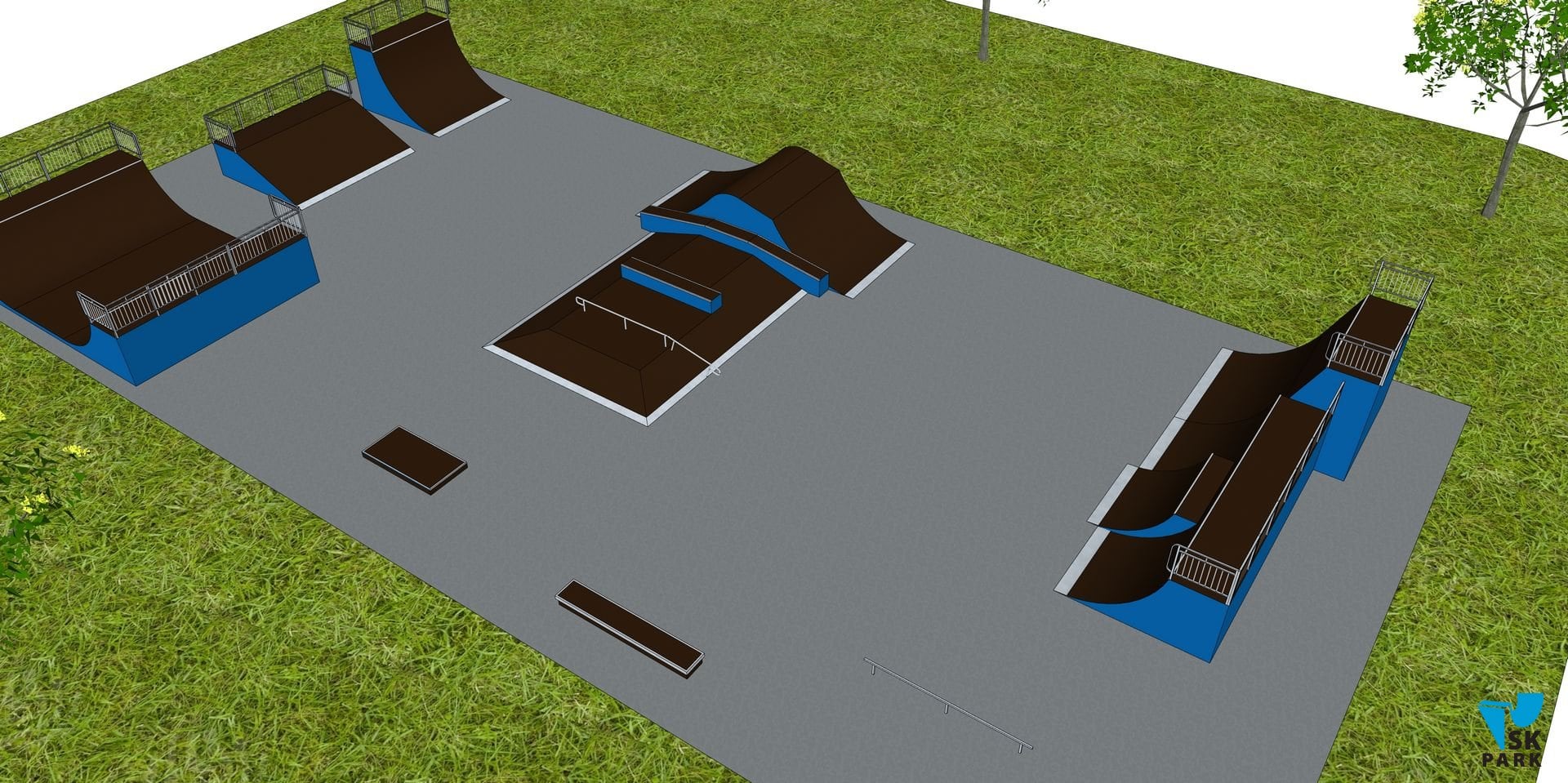 Проект разработан специалистами компании SK PARK по индивидуальному заказу администрации г. Углич, кроме прочего, проект предусматривает наличие мини рампы высотой 1,6 м. В целом, площадка представляет собой комплекс различного оборудования, позволяющего кататься в разных дисциплинах - ВМХ/МТВ, скейтбординг, кик скутер, ролики, так же предусмотрена секция для начинающих райдеров, позволяющая отрабатывать базовые трюки. Учитывая размеры площадки, мы разместили оборудование таким образом, что бы катание было комфортным, а главное - безопасным. Кроме обычного катания, скейт площадка может использоваться для проведения учебно-тренировочного процесса райдеров в олимпийских дисциплинах BMX “Freestyle», а также “Скейтбординг Стрит”.