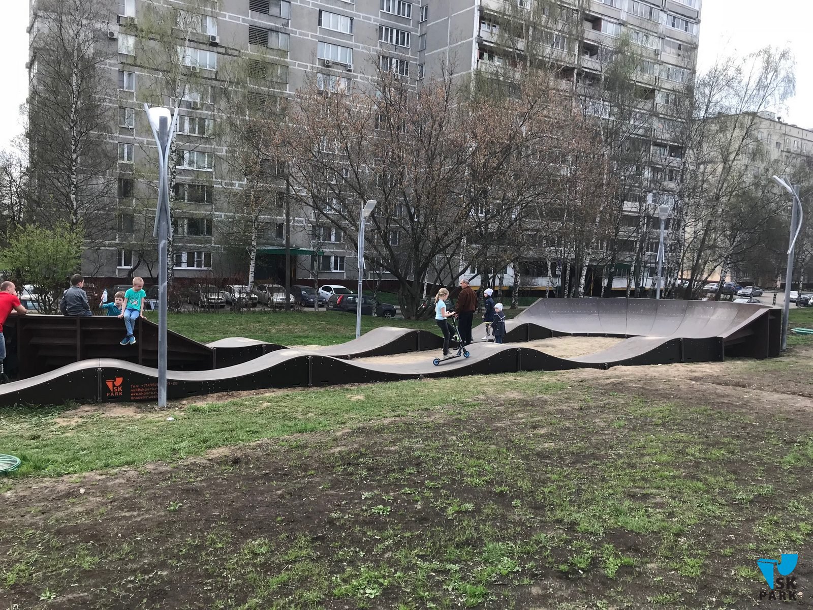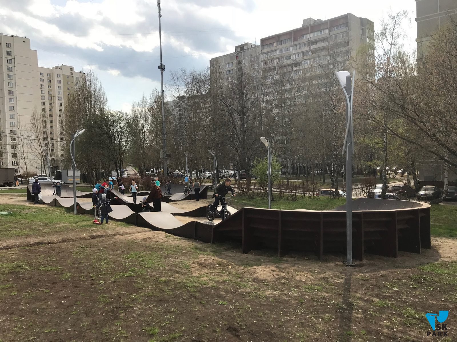 В конце прошлого года компания «SK PARK» завершила строительство памп трека в районе «Теплый стан», который располагается на юго-западе города Москвы.